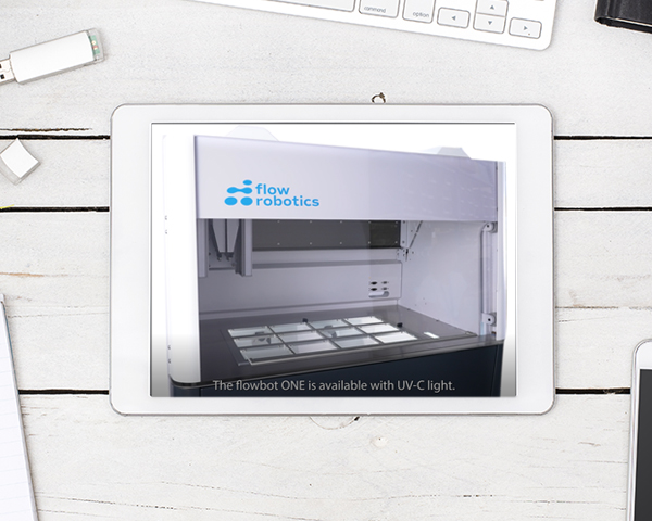 The user-friendly liquid handling robot, flowbot® ONE, is available with UV light, designed to make your clean-up process easy, efficient, and effective.